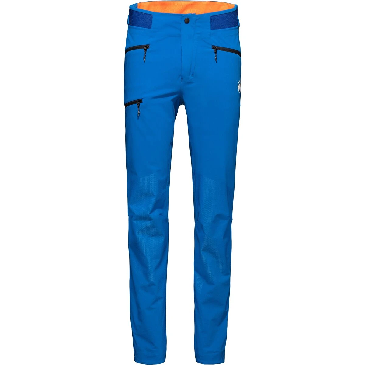 Traveling across glaciers or up long alpine climbs demands breathability, toughness, and serious mobility, which are the calling cards of the Mammut Eisfeld Light SO Men’s Pant. Made from an abrasion-resistant, double-layer soft-shell fabric, the Eisfeld is a stretchy and highly-breathable pant with a slim cut for smooth hiking, high stepping, and skiing. Reinforced panels at the knee and lower leg provide an extra shot of durability, while the harness-friendly pockets serve up convenient stash spots for our essentials. An adjustable waistband lets us get the perfect fit, and drawcord adjustable leg hems cinch up the pants around our boots.