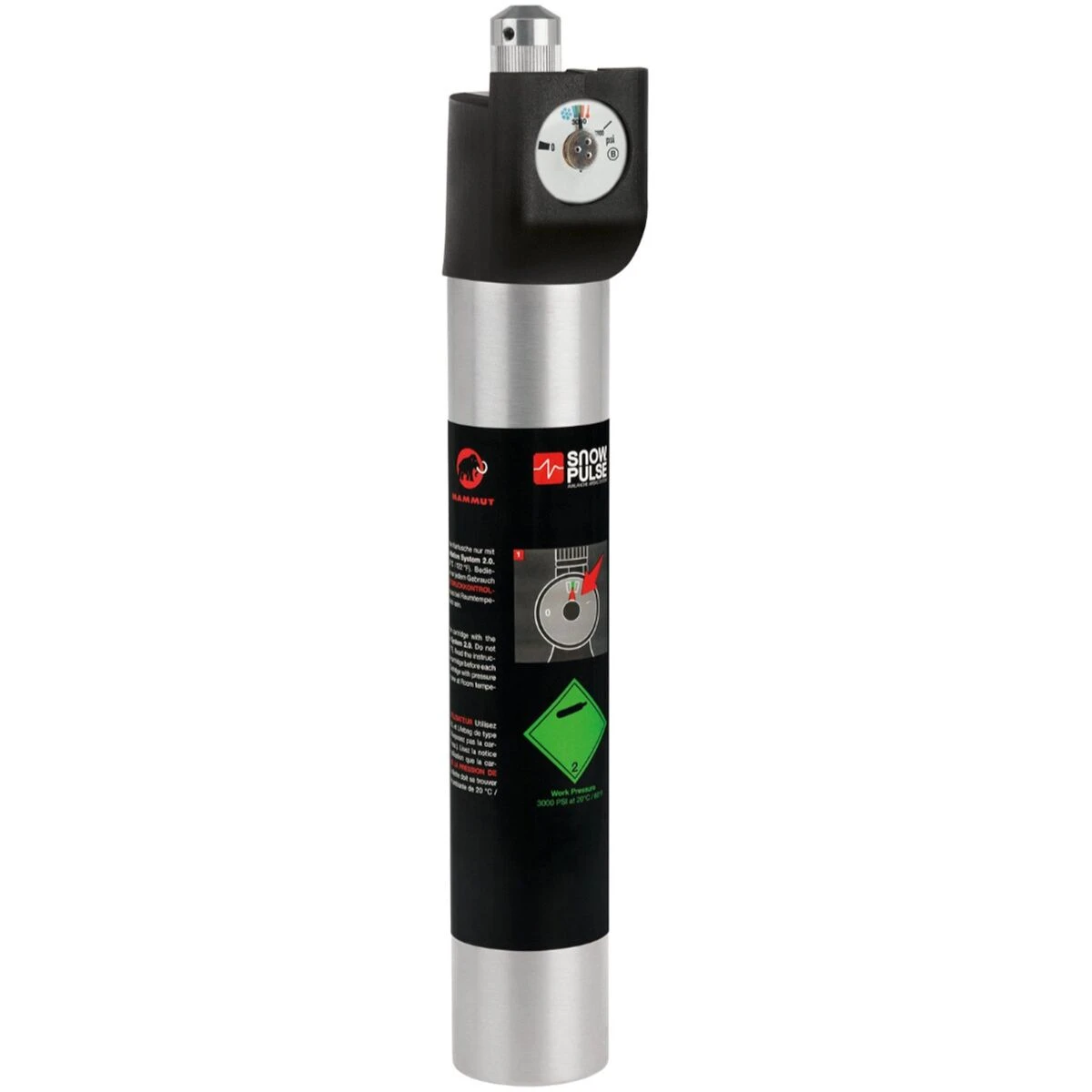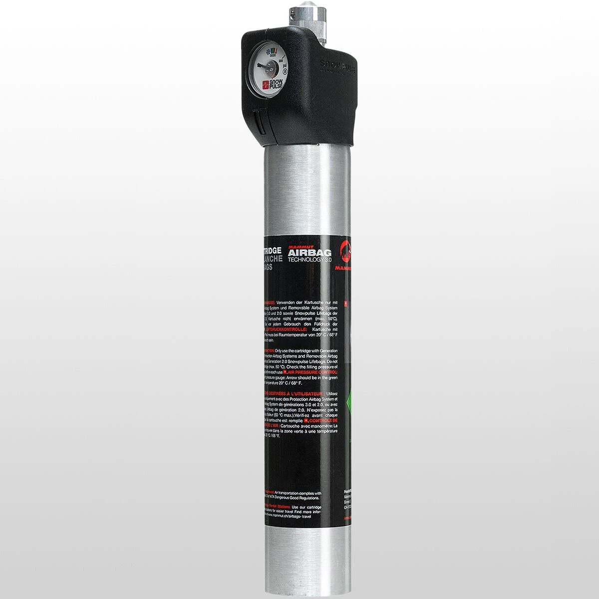The Mammut Refillable Airbag System Cartridge is the critical element for your Mammut RAS (Removable Airbag System), Protection Airbag System, and older Snowpulse avalanche airbags to work. Once you’ve filled this empty cartridge to 3000PSI and installed it into your airbag system, it’s ready to deploy the buoyant airbag that helps you remain on the surface of an avalanche. For durability, a valve protector has been added, and filling pressure can be controlled via an integrated pressure gauge. The cartridge must be filled after each use at an authorized refill center.