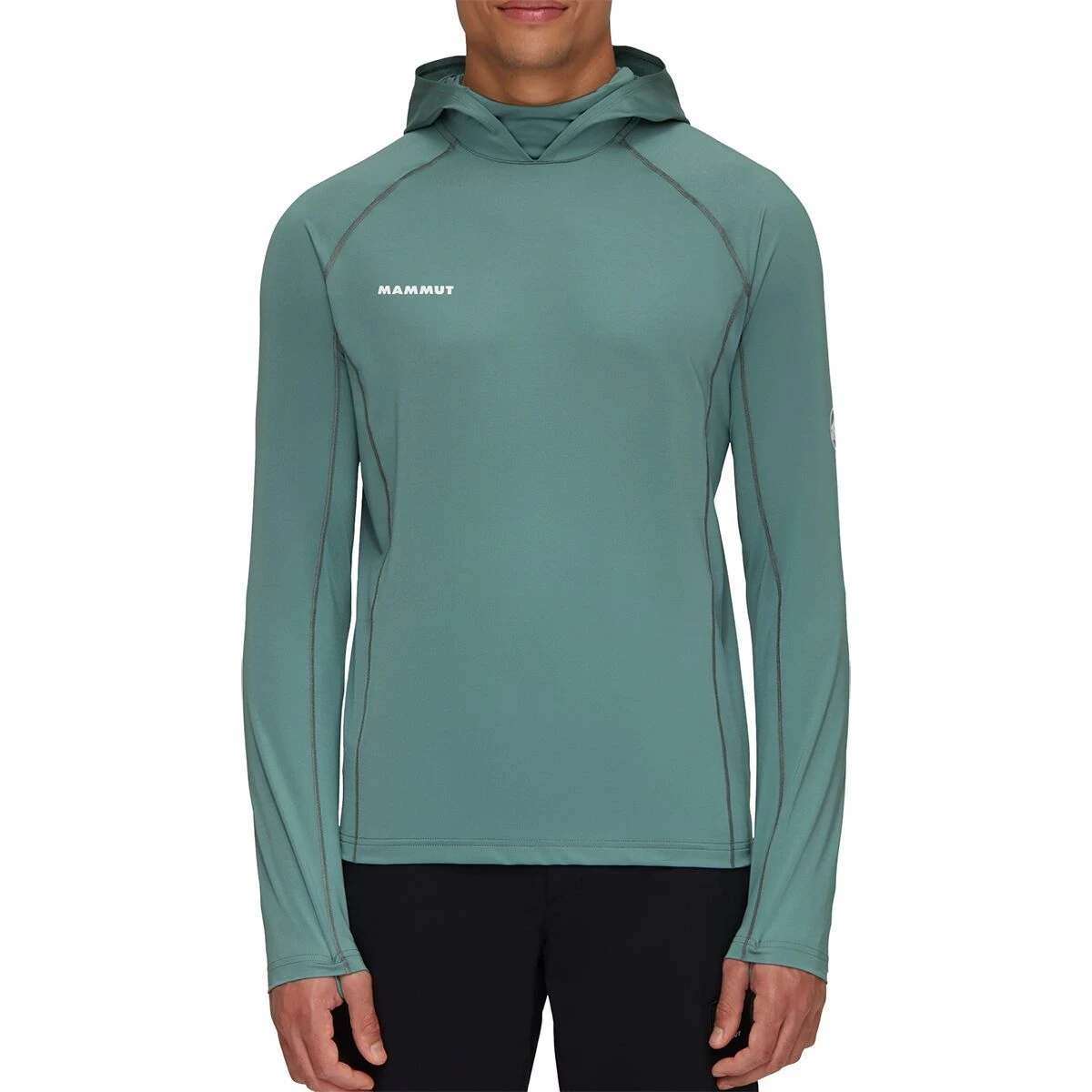 - Integrated hood, neck gaiter, and thumbholes increase coverage