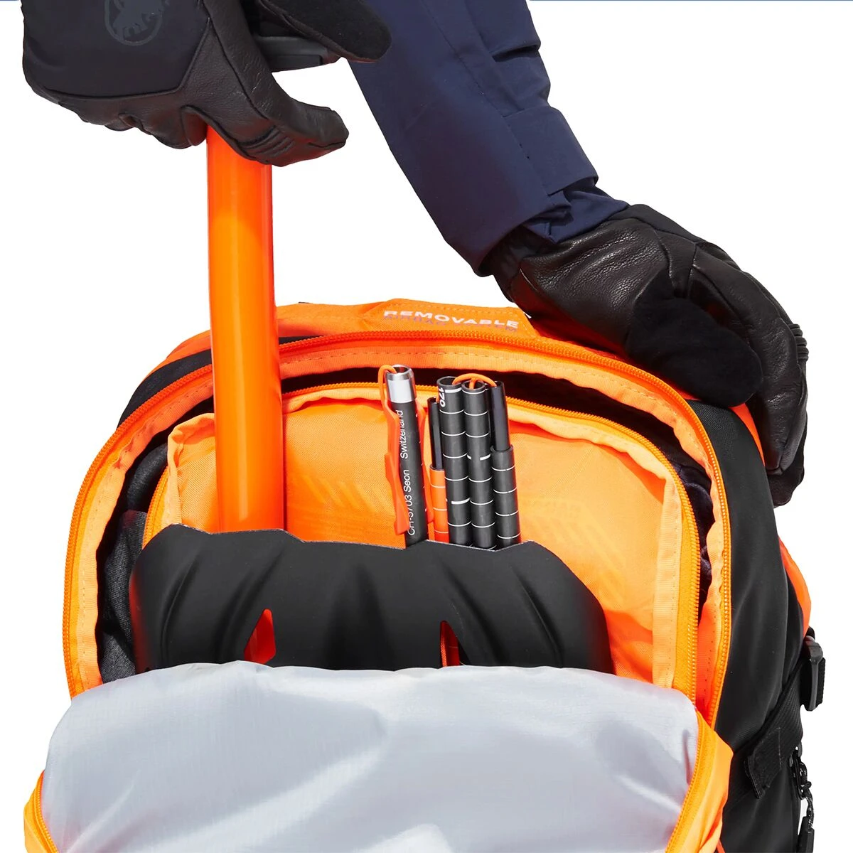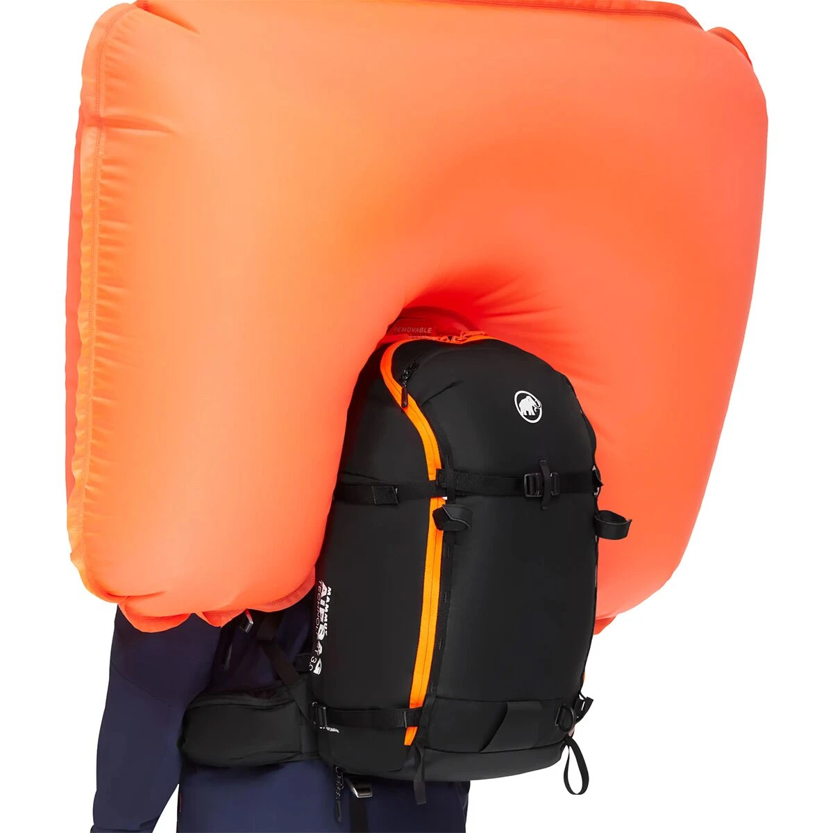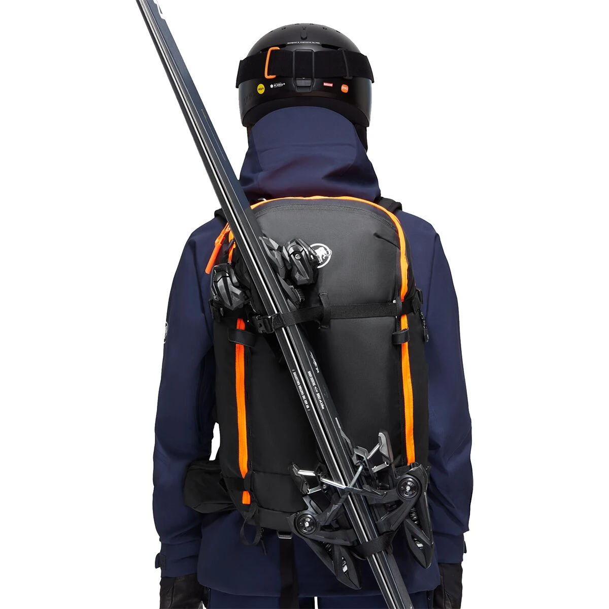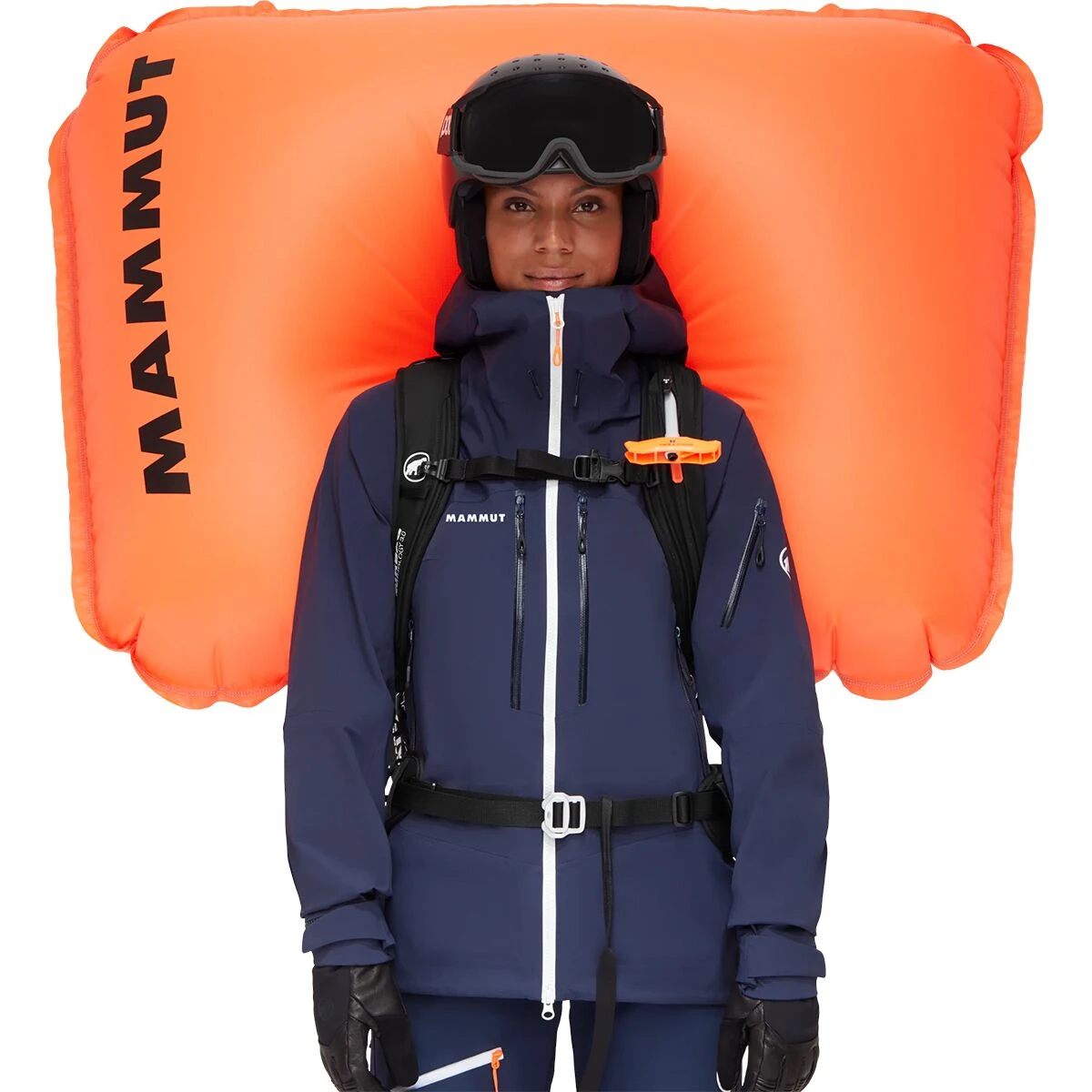 For a full day of carving fresh turns, we get kitted with the Tour 30L Removable Airbag 3.0. The women-specific harness system coupled with a 3D-molded back panel ensures a comfortable carry, while the flexible U-frame evenly distributes our load for optimal stability as we climb and shred. Equipped with Mammut’s ultralight, compact Airbag System 3.0, this pack boosts safety, not weight.
